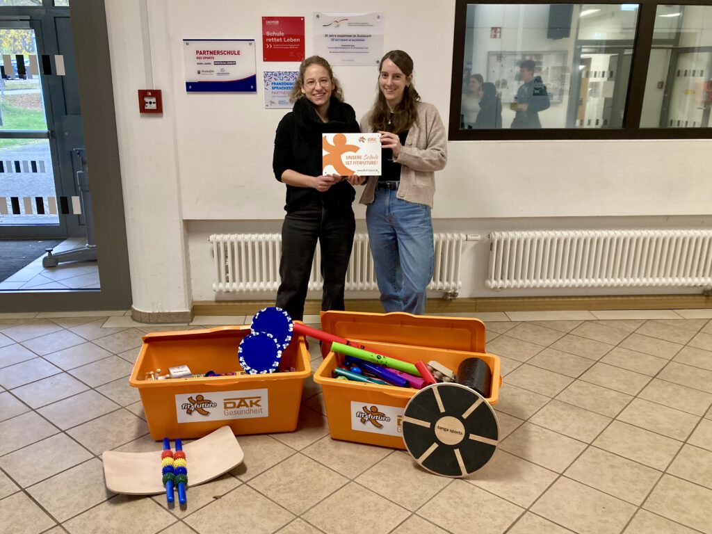 Um dies zu erreichen, hat uns fit4future u.a. die fit4future-Box mit TÜV-zertifizierten Sport- und Spielmaterialien – für aktive Pausen, bewegtes Lernen, Ausgleichsübungen und die Bereicherung des Sport-/Unterrichts – zur Verfügung gestellt. Ferner haben wir Zugriff auf eine digitale Gesundheitsplattform mit exklusiven Angeboten wie Unterrichtseinheiten, Videos, Quizformaten, Materialien für Vertretungsstunden und vieles mehr. Wir freuen uns, all das in unseren Schulalltag zu integrieren und unsere Schulgemeinschaft fit4future zu machen.