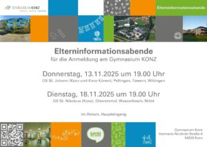 Wir bieten in diesem Jahr zwei inhaltsgleiche Informationsabende für die Eltern der Viertklässler an, an denen wir über unser Angebot und die verschiedenen Wahlmöglichkeiten bei der Anmeldung informieren.